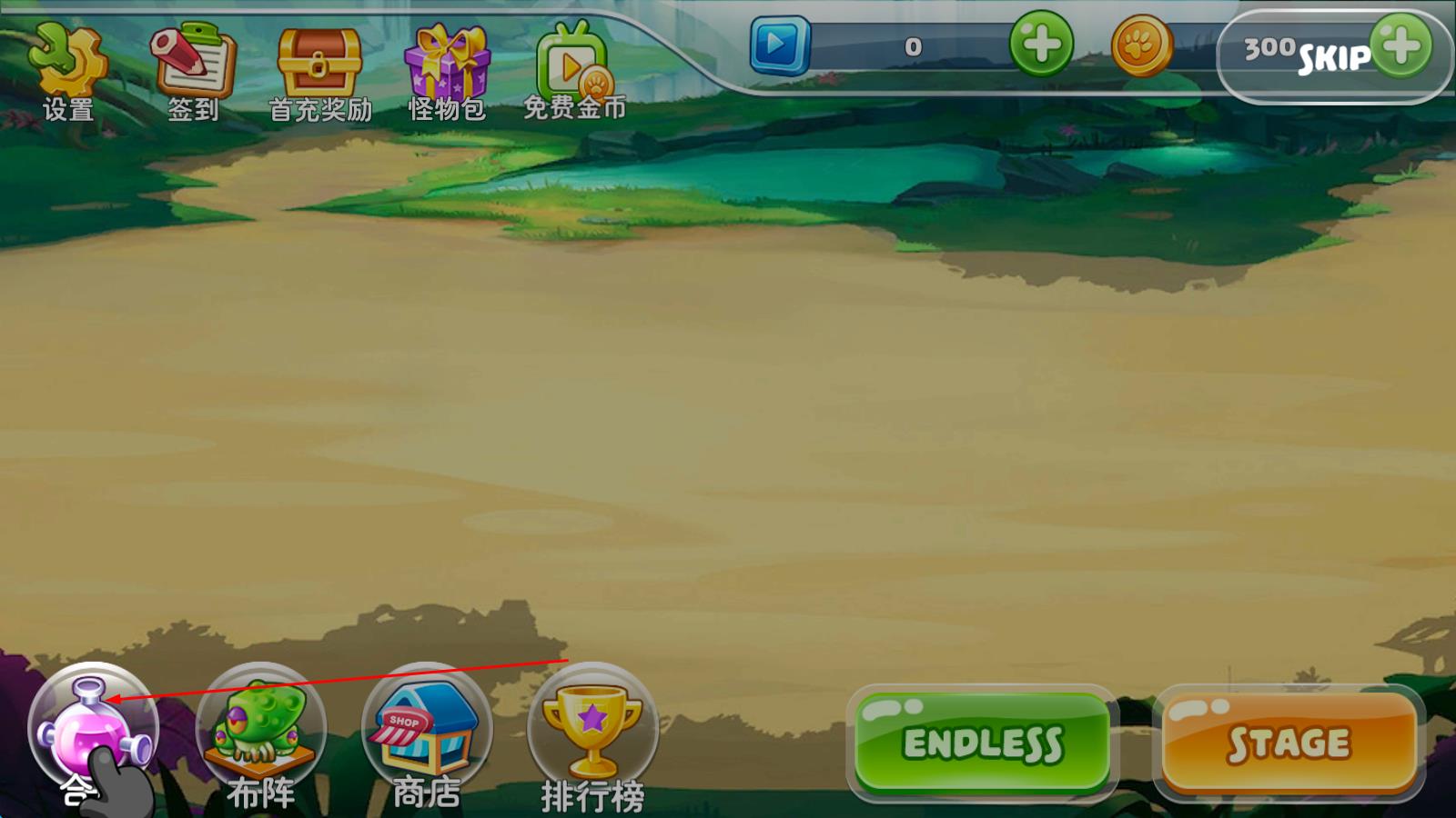 1、进入游戏后,操控合成机器选择两只小怪物进行合成,根据素材怪物属性生成新怪物,为塔防战斗储备战力。