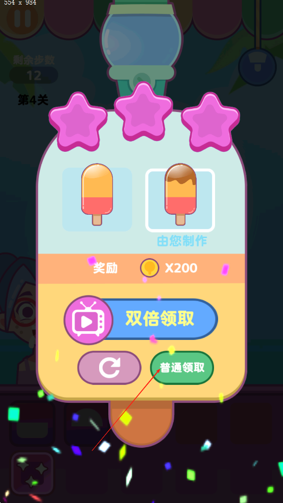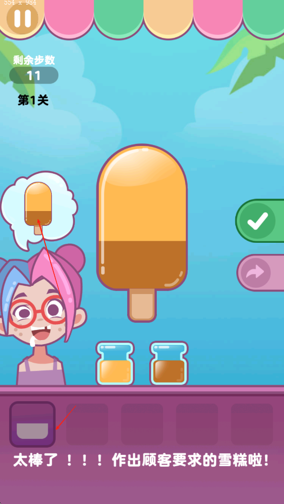 3、冷冻完成后取出冰棒,若符合客人要求的口味与造型可获得金币奖励,使用金币解锁高级原料与稀有模具。