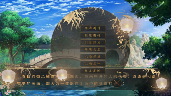 3、菜单界面含【保存剧情】【继续剧情】等功能,可管理进度、调整设置,还能查看人物信息或进入鲜花商城。