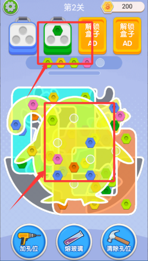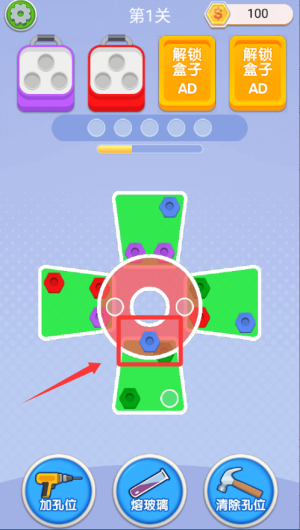 1、进入关卡后先观察整体结构,找到螺丝钉的位置和连接方式。