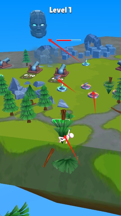 3、关卡随机元素:每局关卡中石像位置、炮台分布、可拾取石头数量随机,增加重复游玩新鲜感与策略变化。