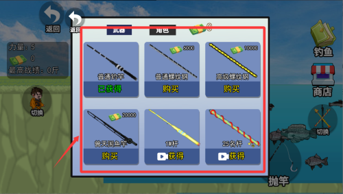 1、先解锁基础钓鱼工具,比如鱼竿和鱼饵,选择合适的水域开始练习。