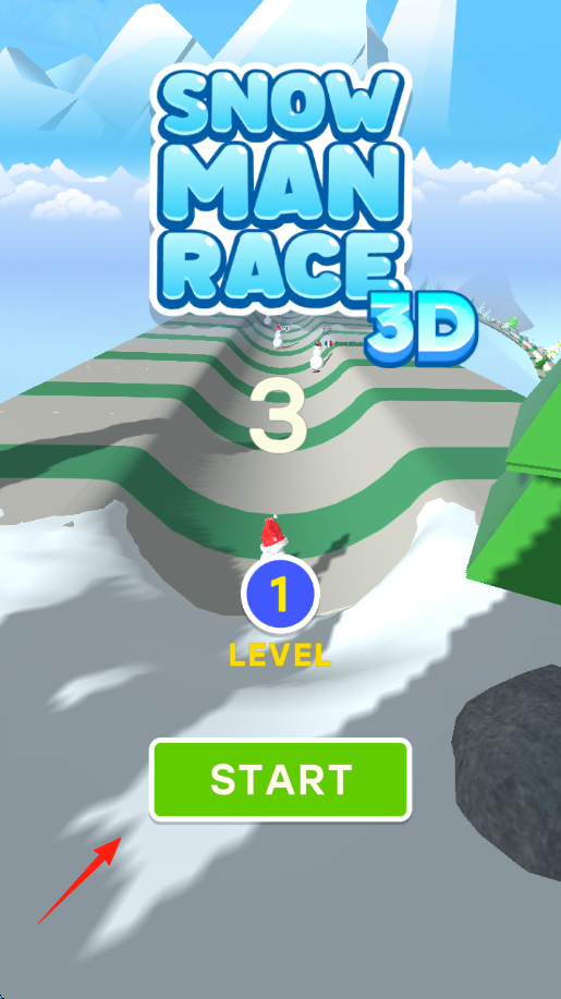 1、开局引导点击“START”,进入“LEVEL1”雪地赛道,控制戴红帽雪人,准备与其他雪人竞赛。