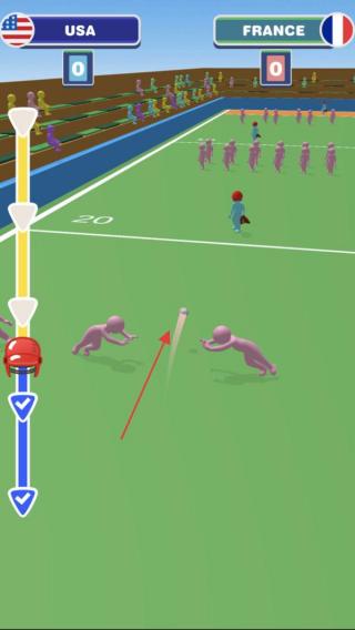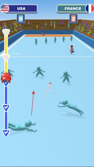 1、投球操作控制美国队(USA)投手,瞄准法国队(FRANCE)击球区,调整投球轨迹(红箭头),发起进攻。