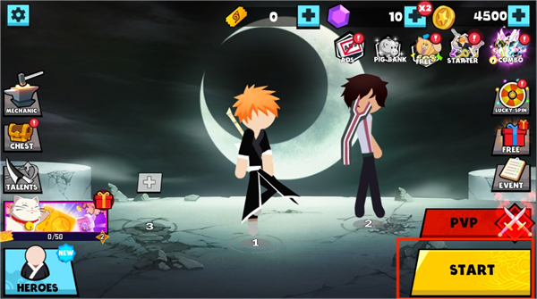 2、多元英雄体系:提供十余位造型各异的火柴人勇士,每位英雄拥有专属格斗流派(如咏春、泰拳、空手道),技能机制与连招逻辑各具特色,解锁收集乐趣十足。