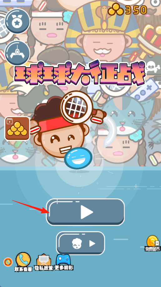 3、养成与奖励通过对战获金币(350),可用于养成、解锁角色,主界面有“免费金币”等福利入口。