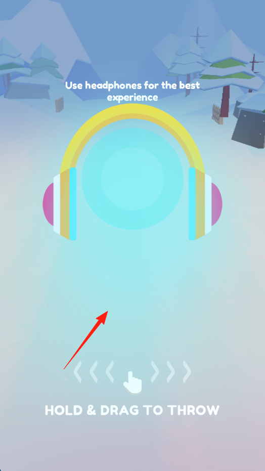 2、操作引导提示“Useheadphones(戴耳机)”“HOLD&DRAGTOTHROW(按住拖动投掷)”,通过节奏操作,开启跑酷。
