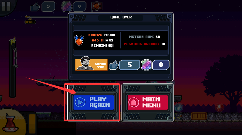 3、若挑战失败,在界面点击“PLAY AGAIN”重新开始,可刷新你的奔跑记录。