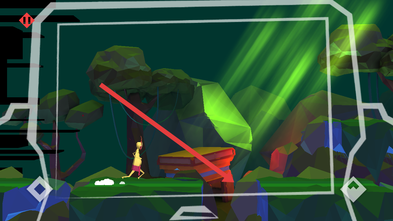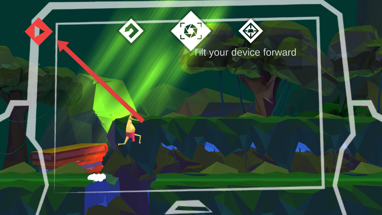 3、根据提示点击左上角红色三角按钮,或倾斜设备(Tilt your device forward),控制角色跨越障碍推进流程。
