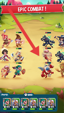 1、在“EPIC-COMBAT!”战斗页,指挥英雄部队(红箭头指向),对战敌方,推进战斗进程,获取奖励。