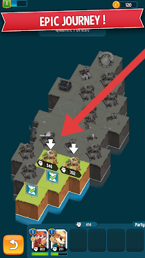 2、进入“EPIC-JOURNEY!”地图,选红箭头指向关卡,派遣英雄,探索挑战,解锁新区域与任务。