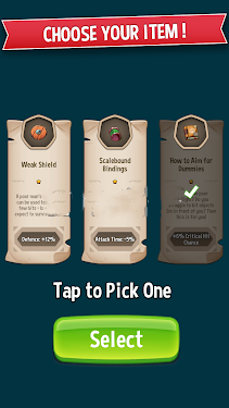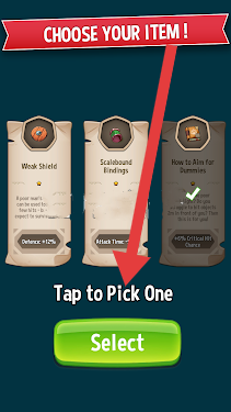 3、道具选择页,点“Tap-to-Pick-One”,选心仪道具(如右侧),点【Select】,强化英雄,助力冒险。