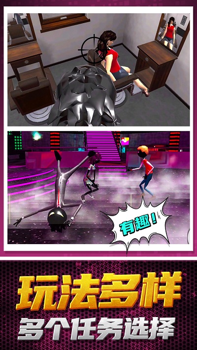2、关卡设计脑洞:关卡中设置需丝线摇荡跨越的陷阱、载具碾压的敌群等创意场景,结合怪异物理效果,每关都有独特搞笑体验。