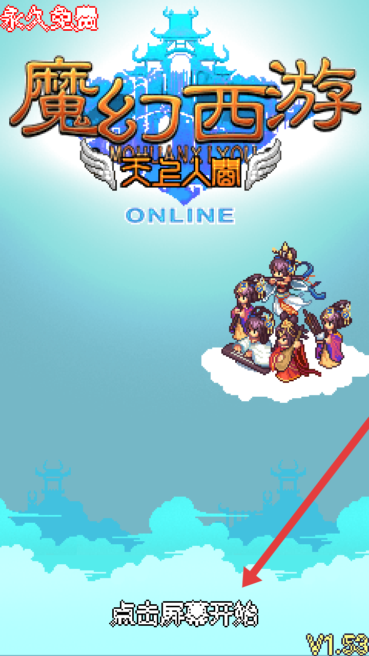 1、进入魔幻西游的游戏启动主界面,操控者需要点击屏幕任意位置,进入功能选择页面。