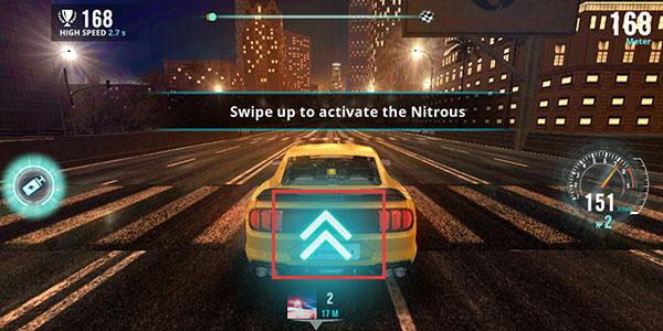 3、当能量到一定程度时,向上滑动屏幕即可开启氮气加速技能。