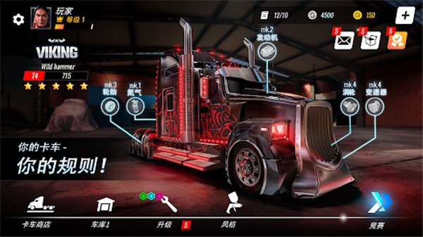 3、成功完成比赛挑战后,可解锁车辆升级荣誉板块等内容,获取奖励并收集更多酷炫卡车,拓展竞速体验。