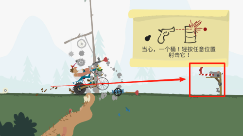 3、遇到路障时快速点击射击键,清除前方障碍保持骑行速度。