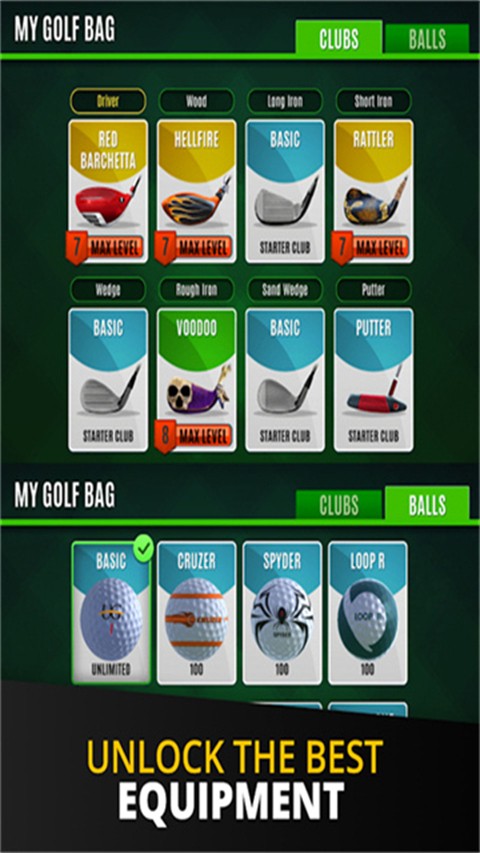 3、收集与成长系统:通过赢取对局解锁高尔夫球袋,获取各类球杆与球,可升级球杆性能,搭配真实球场挑战,形成完整的收集与成长体系,让玩家在进步中感受成就感。