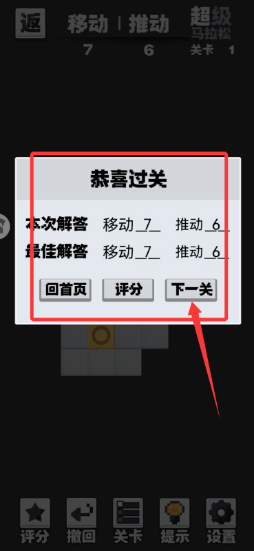 3、成功将箱子推到位,顺利通关后可点击下一关继续挑战。
