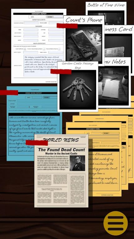 1、玩家将化身侦探,通过搜集线索解锁各种犯罪案件。