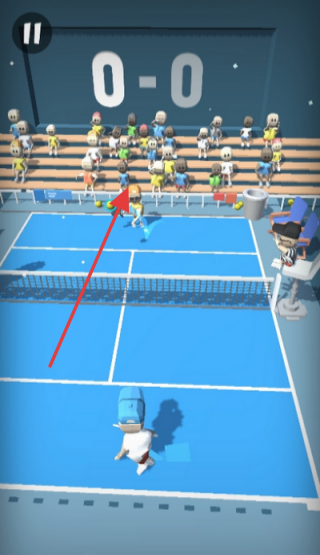2、比赛中,观察对手位置,滑动屏幕控制角色移动、击球,回击对手来球。