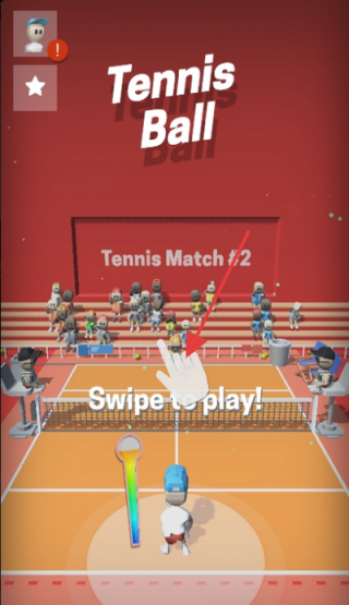 1、在初始界面,按照【Swipe to play!】提示,滑动屏幕发球,开启网球对战。