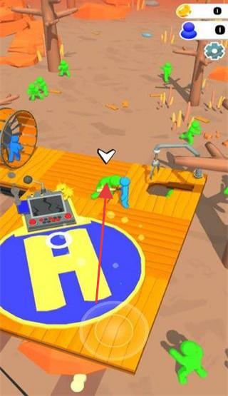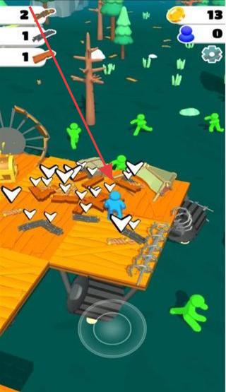 1、操控蓝色角色,前往木板区域带白色箭头处,获取武器或道具增强战力。
