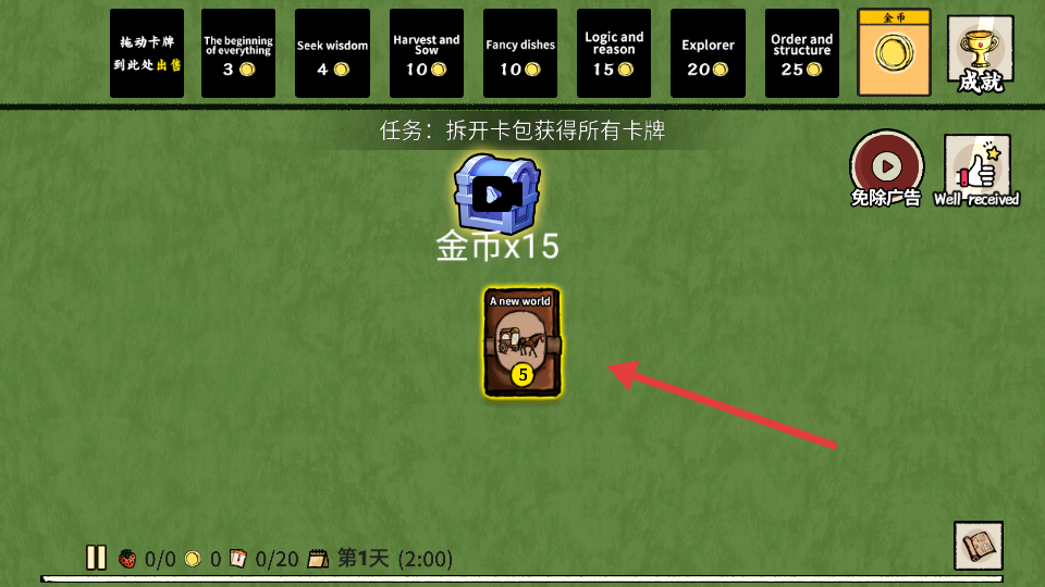 1、开局三张基础卡牌往桌上一拍,小麦堆下面放磨坊就能变面粉。