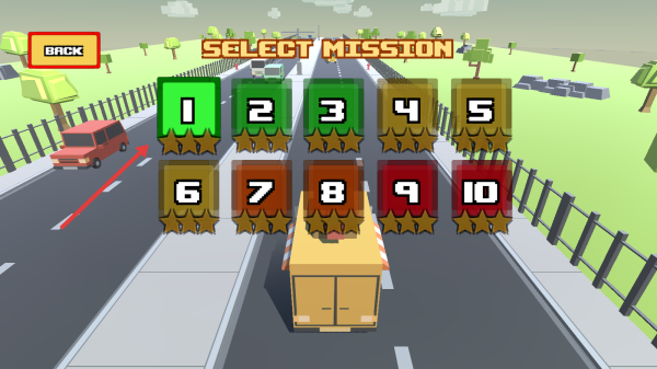 2、在【SELECT MISSION】页选带星号关卡(如1-10关),开始对应配送任务。