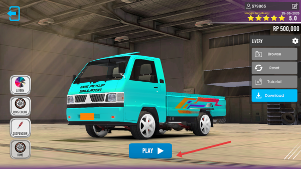 1、车库界面点击【PLAY】,驾驶改装小货车开始游戏。