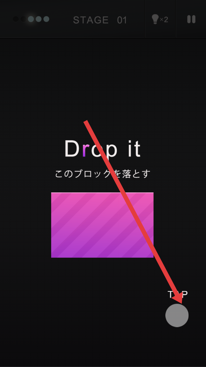 2、在STAGE01关卡,拖动箭头指向的灰色圆球,按照游戏系统的教学,使紫色方块按提示掉落。