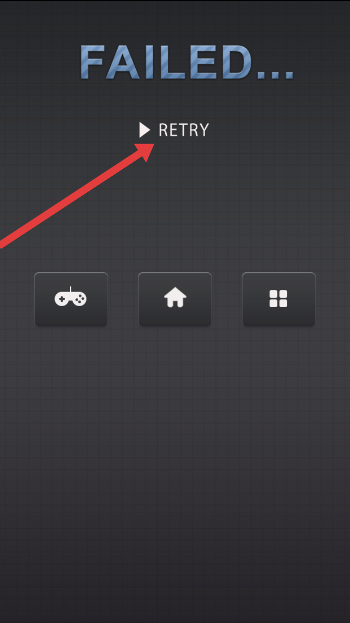 3、当操控者挑战失败后,需要点击箭头指向的【RETRY】的按钮,重新进行尝试当前的关卡。