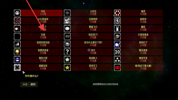 2、刷“成就进度”!找“存在”类成就列表,跟指引操作(吞天体/避碰撞),2步完成,完成获10星点,超赚,解锁隐藏“黑洞核心”。