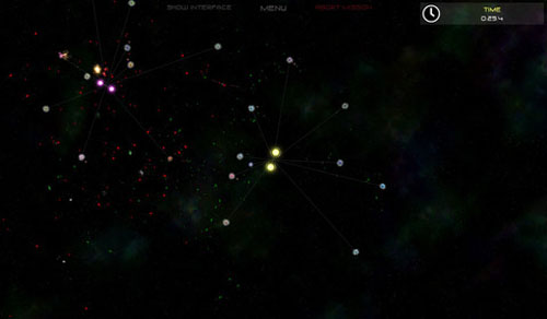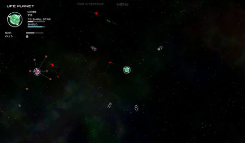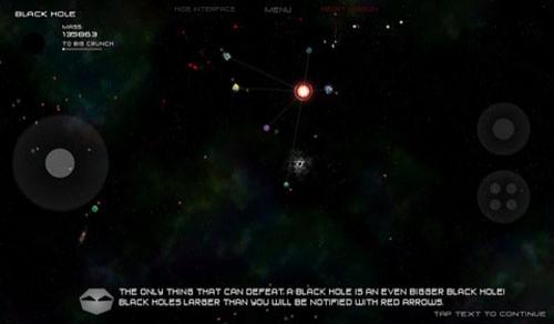 3、自动环绕吸收:任何触碰星体的物质,只要质量更小且不属于其他系统,就会自动按轨迹环绕,点击即可将其吸收。