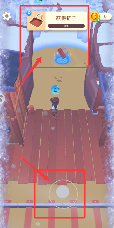 2、在雪域场景,操控角色移动到指定区域,可获取铲子工具推进任务。