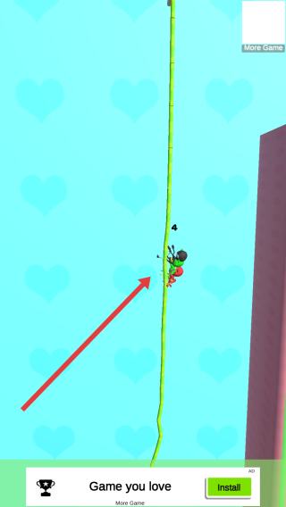 2、游戏中,操控角色(红箭头指向)沿藤蔓攀爬,躲避障碍,争取领先,推进“FINAL-ROUND”。