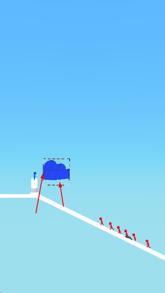 1、点击蓝色区域,生成方块掩体,阻挡红色小人前进,保护己方蓝色小人,需合理规划掩体位置,覆盖关键路径。
