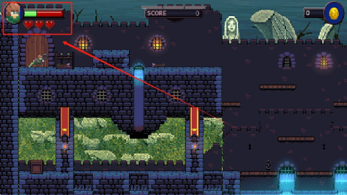 2、屏幕左上角显示生命条,直观呈现主角剩余的血量以及受伤情况。