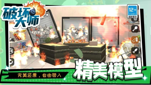 3、渐进式难度设计,初期提供简单指导,后期关卡需要策略规划。通过合理组合破坏手段,实现最大程度的场景摧毁。