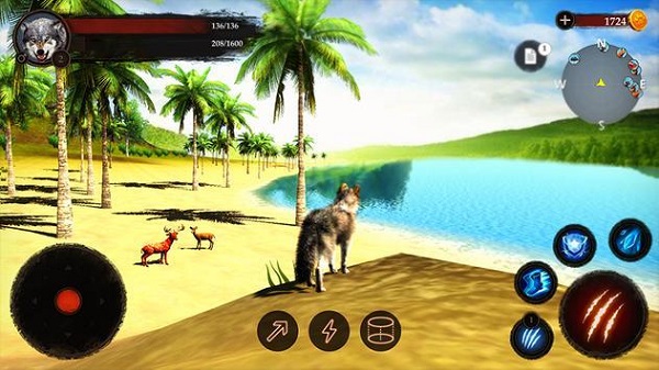 2、在森林地图中,操控狼只追踪猎物足迹,利用地形掩护靠近目标,通过扑击、撕咬等动作完成捕猎,为生存积累能量。