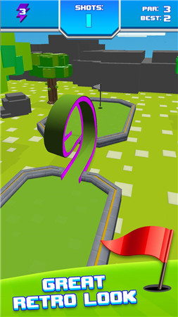 复古迷你高尔夫球是一款融合怀旧像素风格与趣味推杆的体育作品,玩家将在复古像素渲染的奇幻球场中展开高尔夫挑战,通过滑动屏幕调整推杆角度,长按屏幕控制挥杆力度,在躲避旋转风车、穿越彩虹隧道等创意障碍的同时,以最少杆数将球推入像素风格的球洞,以8-bit像素画风呈现恐龙主题球场、太空陨石坑等复古场景。