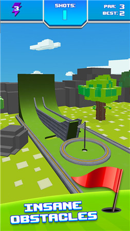 1、复古像素画风:采用经典8-bit像素艺术风格,高尔夫球滚动时触发像素颗粒特效,障碍碰撞呈现复古马赛克碎裂动画,搭配复古电子音效,还原红白机时代的怀旧质感。