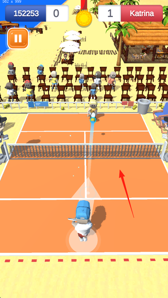 3、得分目标预判球路,精准回球,让对手接不到,累计得分赢取金牌,推进关卡,解锁新对手、场地。