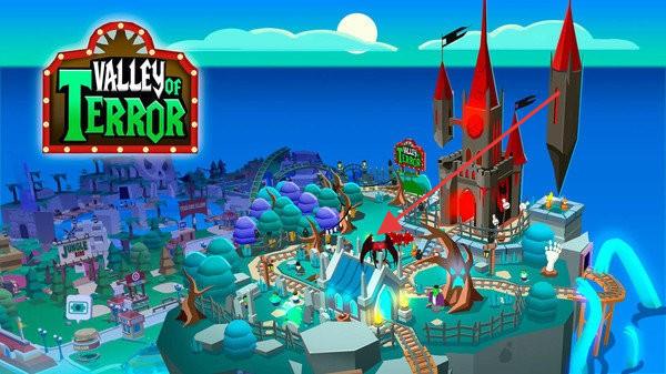 3、搞“恐怖开发”!建造“VALLEY OF TERROR”鬼屋,添加特效、NPC,1次完成优化,每惊吓100名游客,获得道具。