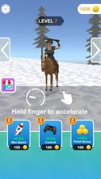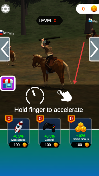 1、长按加速按钮,控制骑马角色开始【LEVEL0】比赛。