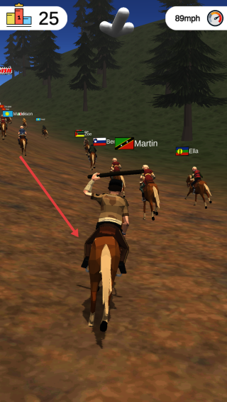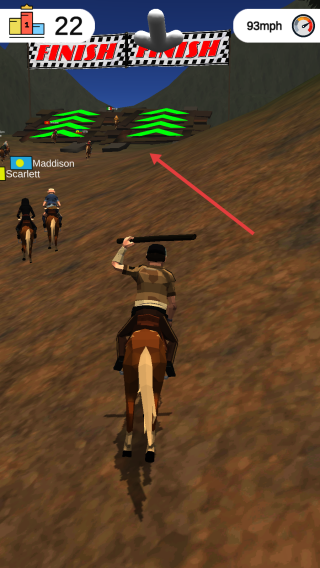 2、沿赛道骑行,跟随箭头方向,超越其他骑马选手。