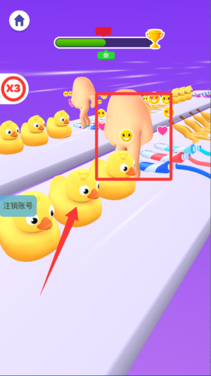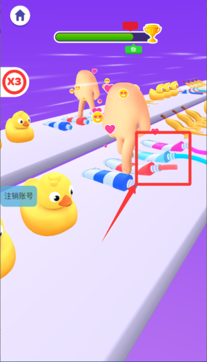 1、开局先熟悉手指人的移动方式,左右滑动屏幕控制角色避开赛道上的香蕉、小黄鸭等障碍物。