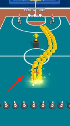 1、收集金币角色沿金币路径跑酷,避开障碍(路锥),收集金币,冲向奖杯,积累奖励升级。