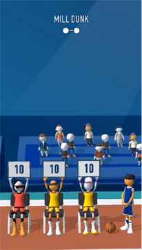3、评委评分“MILLDUNK(磨坊扣篮)”后,评委举牌打分(10分),根据扣篮难度、创意,累计高分解锁新动作、关卡。