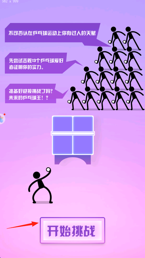 3、胜利目标每击败1个对手推进挑战,累计击败13人,成为“乒乓球王者”,解锁新难度、场景。